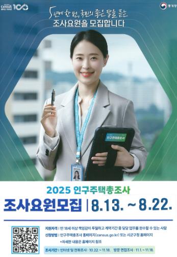 본조사는 오는 10월 22일부터 11월 18일까지 약 한 달간 진행되며, 화순군은 이번 조사요원 모집을 통해 인력 운영을 효율적으로 추진하여 본조사를 실시할 계획이다.