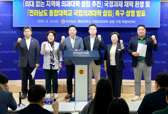 그동안 도의회와 전남도는 정부·국회·정당 방문, 정책토론회·공청회 개최, 대학 통합 합의 등 모든 역량을 총동원해 의대 설립 필요성을 적극 설득해 왔다. 의대 특위는 “이번 국정과제 확정은 그간의 좌절을 딛고 희망을 현실로 만드는 결정적 전환점”이라고 강조했다.