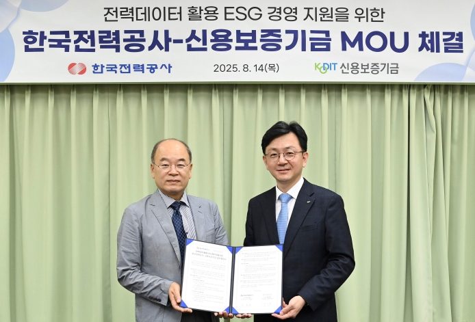 한전은 8월 14일 한전 아트센터에서 신보와 '전력데이터 활용 ESG 경영 지원'을 위한 업무협약(MOU)을 체결했다. 이번 협약은 한전이 보유한 전력데이터와 신보의 금융 인프라를 결합해, 기업의 전기사용량 절감 실적을 기반으로 ESG 성과를 인증하고 우수기업에 금융 우대 혜택을 제공하기 위하여 마련됐다.