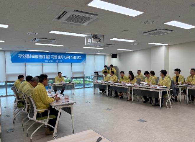 김산 군수 주재로 무안군보건소 4층 회의실에서 열린 이번 회의는, 11개 실과소장이 참석한 가운데 7월 17일과 8월 3일에 발생한 집중호우의 강우량 현황과 원인분석 그리고 이에 따른 대책에 대해 논의했다.