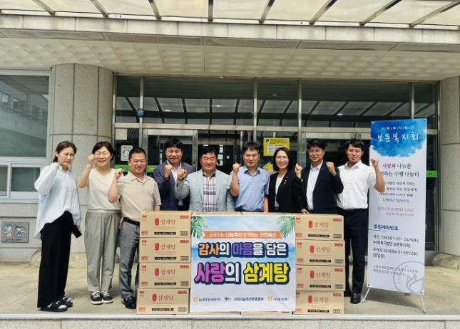 한편 구례지역자활센터 자활사업에 참여하고 있는 고00참여자는 “무더운 날씨에 맛있는 삼계탕을 받으니 든든한 삼계탕 한 그릇이 주는 기운을 받은 느낌이다”라며 “지치지 않고 나아갈 수 있도록 맛있는 삼계탕을 후원해 주신 농협전남본부와 (사)나눔축산운동본부, 구례축협, 구례지역자활센터 모든 직원분들게 깊이 감사드리며 항상 건강하시기를 기원드린다”며 소감을 말했다.