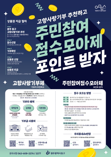 한편 동구는 고향사랑기부제를 통한 모금으로 1935년 개관한 광주극장 보존, 발달장애 청소년 E.T 야구단 지원, 유기동물 구조·보호 사업, 청소년 교육 지원사업, 저층 주거지 집수리 지원 등 사업을 추진 중이다.