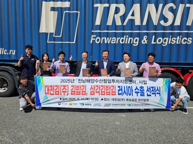 이날 선적식에는 목포시, 전남해양수산창업투자지원센터, 대천김(주) 관계자들이 참석해 수출 성과를 축하하고 향후 수출 확대를 위한 협력 의지를 다졌다.
