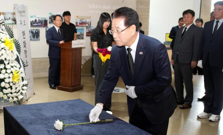 추모식은 김영록 전남도지사, 김대중 전남도교육감, 조석훈 목포시장 권한대행, 이광일 전남도의회 부의장과 도의원, 조성오 목포시의회 의장 등이 참석해 경건한 분위기 속에서 헌화, 추모사, 편지 낭독, 추모 공연 순으로 진행됐다.