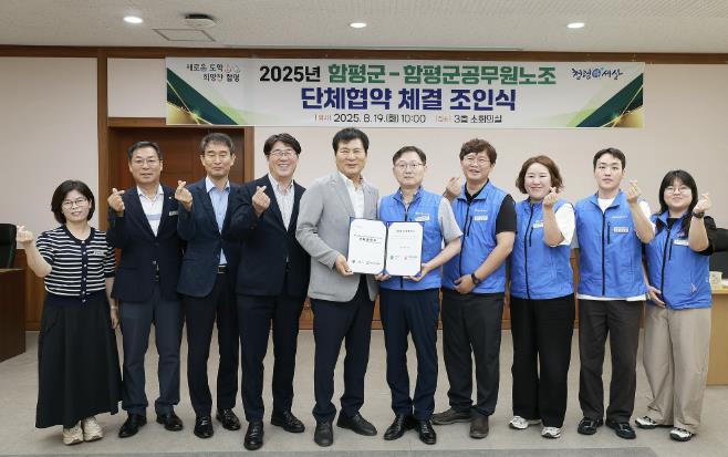 정안식 함평군공무원노동조합 위원장은 “노측 의견을 경청해 오늘 협약을 체결하기까지 노력해 주신 사측에 감사드린다”며 “직원복지와 권익향상과 더불어 군민을 위해 노력하는 노사문화를 정착해 나가겠다”고 답했다.