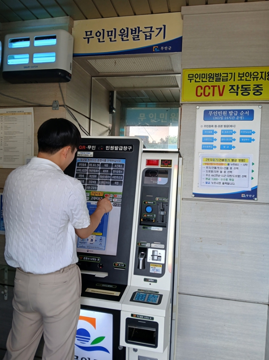 현재 무안군에는 무인민원발급기가 17개소 설치되어 있으며, 군청 민원실, 삼향읍 남악출장소, 청계면사무소, 무안국제공항 등 4개소는 24시간 이용할 수 있다.