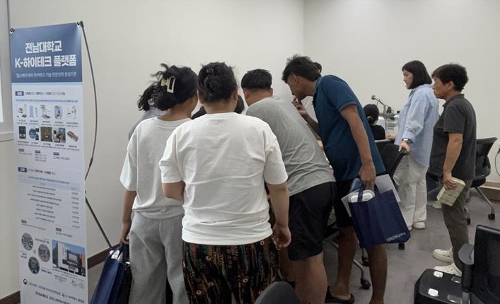 20일 전남대에 따르면 지난 8일 k-하이테크 플랫폼(생체재료개발센터장 강성수)은 담양대숲연합사업단 교육장에서 진행된 ‘찾아가는 종합 체류지원서비스’ 행사에 참여해 디지털 헬스케어 장비를 활용한 건강관리 서비스 장비 공유개방을 성공적으로 수행했다.