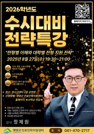 수시 대비 전략 특강에 대한 안내는 영암군진로진학지원센터에서 한다.