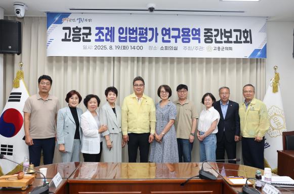 고흥군의회 류제동 의장은 “이번 중간보고회를 통해 입법평가의 방향성과 필요성을 다시 한번 확인했다”며, “군민 생활에 실질적으로 도움이 되는 조례 정비가 이루어질 수 있도록 의회 차원에서 적극 지원하겠다”고 밝혔다.