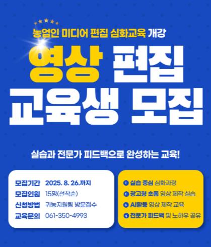 특히, 최신 트렌드에 맞춘 숏폼 콘텐츠 심화 제작 기법과 농업인의 특성을 반영한 실습 중심 교육이 강화될 예정이다.