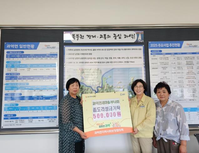 안영심 새마을부녀회 회장은 “정성을 모아 마련한 성금이 우리 이웃들에게 작은 힘과 위로가 되길 바란다”며 “앞으로도 어려운 분들을 위해 회원들과 함께 나눔을 이어가겠다”고 전했다.