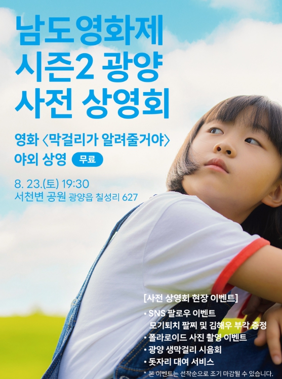 김명덕 광양시 문화예술과장은 “이번 사전 상영회는 한여름 밤 무더위를 식히고 가족과 특별한 추억을 만들 수 있는 좋은 기회”라며 “많은 시민이 함께해 남도영화제의 성공적인 개최를 응원해 주시길 바라며, 시 또한 성공적인 개최를 위해 최선을 다하겠다”고 밝혔다.