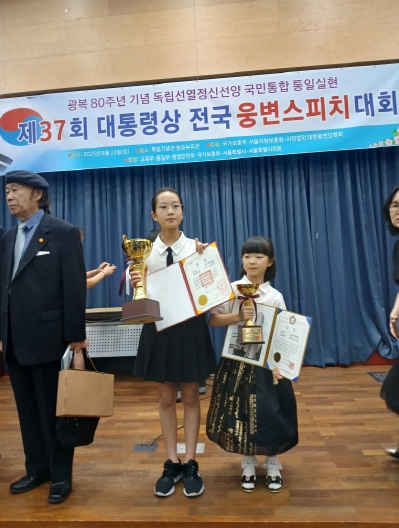 특히, 김소영 학생은 지난해 한국자유총연맹 본부에서 열린 '제60회 나라사랑 스피치 전국대회'에서 통일부장관상(3위)을 수상한 경력이 있어 다시 한번 뛰어난 역량을 증명했다.