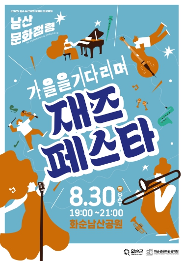 이번 행사는 당초 7월 26일 개최 예정이던 화순 남산공원 로컬힙 프로젝트 ‘별 헤는 여름밤’의 일정을 연기하여 오는 8월 30일 새롭게 구성됐으며, 여름의 끝자락에서 다가오는 가을에 걸맞은 감성적인 재즈 음악을 선보일 예정이다.