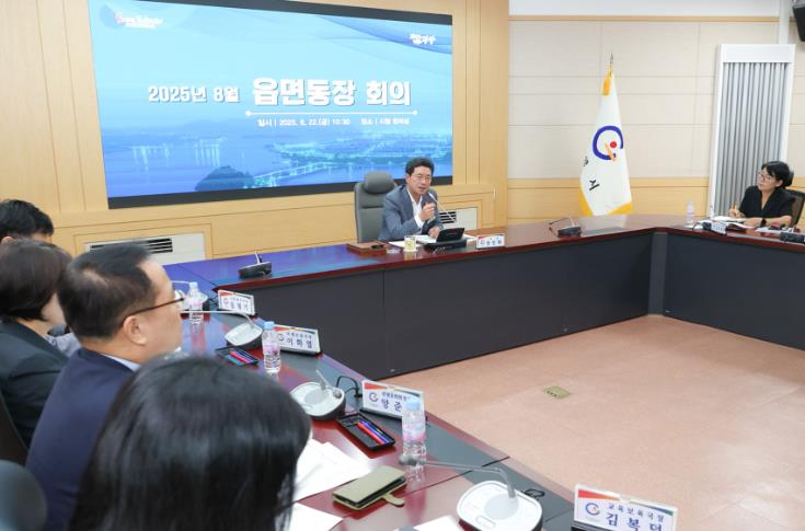 이번 회의는 정인화 시장 주재로 진행됐으며, 시정 주요 당면사항과 홍보 사항을 읍면동에 전달하고, 각 읍면동에서 추진 중인 주요 현안과 미담 사례를 공유하며 시정 전반에 대한 협업 방안을 모색했다.