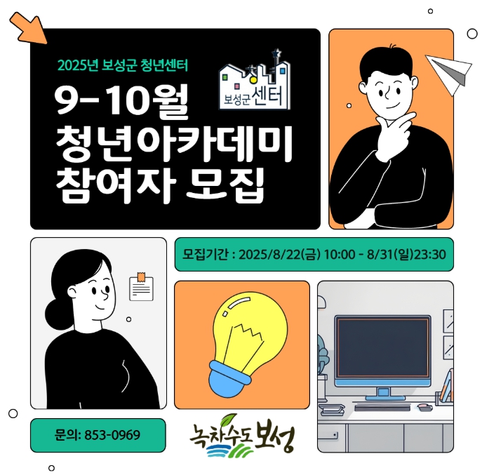 접수 기간은 8월 31일까지이며, 2025년 청년센터 프로그램 미참여자를 우선 선발하고, 온라인 접수 선착순으로 대상자를 확정한다. 신청 및 문의는 보성군 청년센터를 통해 가능하다.