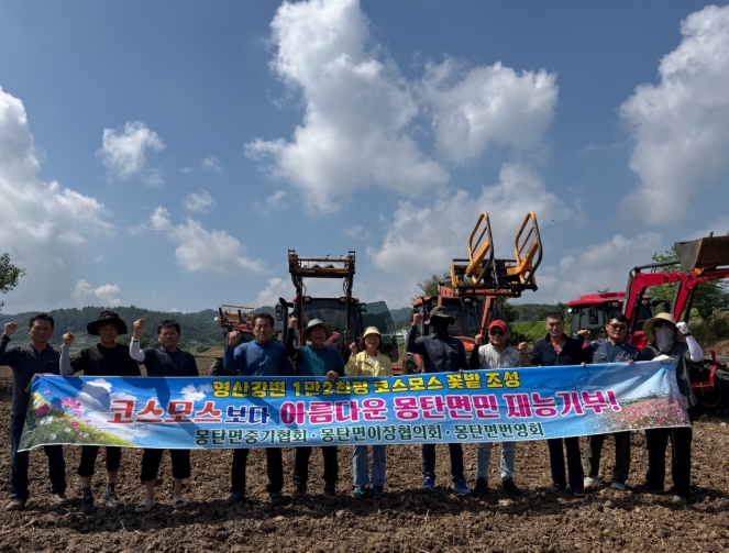 또한 몽탄면번영회(회장 김성비)는 사창리 열차카페 유휴지에 코스모스를 식재했으며, 여성 이장들이 간식을 마련하고 여러 기관·단체도 응원의 뜻을 더했다.