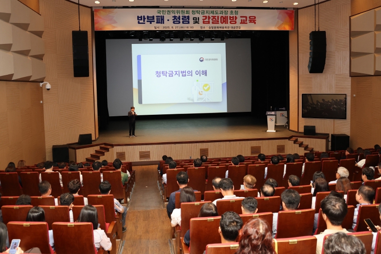 이번 교육은 반부패 정책에 대한 이해도를 제고하고 갑질행위를 사전 예방하기 위해 마련된 것으로 ▲청탁금지법 ▲이해충돌방지법 ▲공무원 행동강령 등 공직자가 반드시 숙지해야 할 주요법령을 실제 사례와 함께 알기 쉽게 설명했다.
