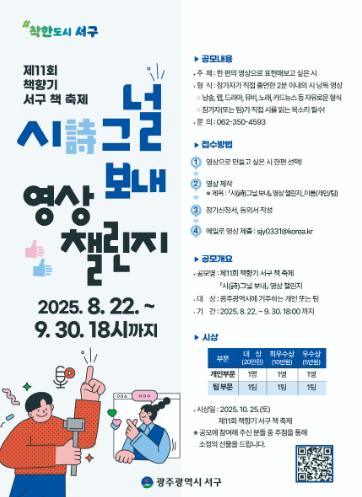 ‘시그널 보내’ 영상 챌린지는 10월에 예정된 제11회 책향기 서구 책 축제를 준비하는 주민 참여형 공모전이다.