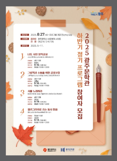 수강 신청은 광주시 누리집 바로예약과 광주문학관을 통해 접수하면 되고, 강좌별 선착순 15명까지 접수한다.