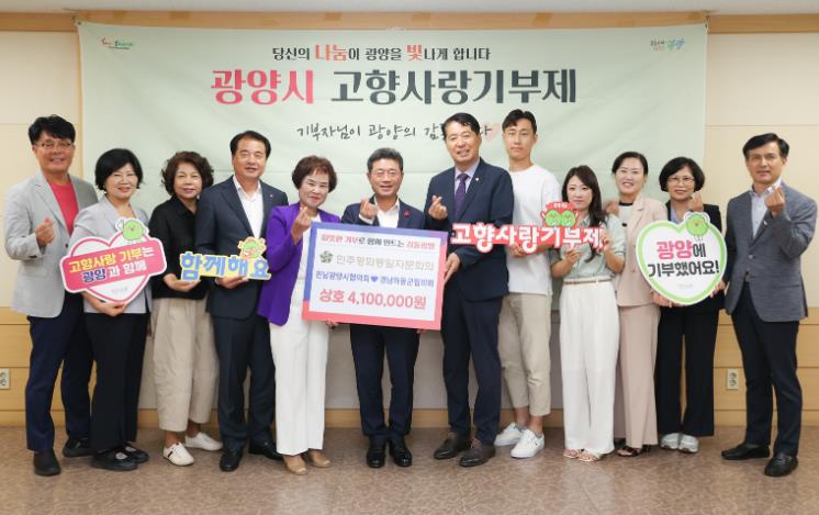 이번 전달식은 자매도시인 광양시와 하동군의 상생 발전과 지역경제 활성화를 도모하기 위해 마련된 자리로, 두 협의회는 각각 410만 원의 고향사랑기부금을 상호 기탁했다.