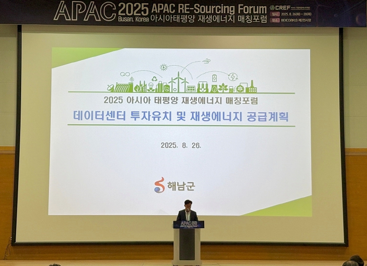 해남군은 대한민국을 대표하는 재생에너지 거점 지방자치단체로서 ▲ 간척지 등에 조성되는 대규모 재생에너지 발전단지 ▲ 기업 맞춤형 PPA(전력구매계약) 기반 에너지 공급체계인 지역 분산형 전력망 ▲ 데이터센터 투자유치 계획 등을 핵심 전략으로 제시하며, 글로벌 RE100 기업들이 안정적으로 전력을 조달하고, 투자할 수 있는 최적의 입지임을 강조했다.