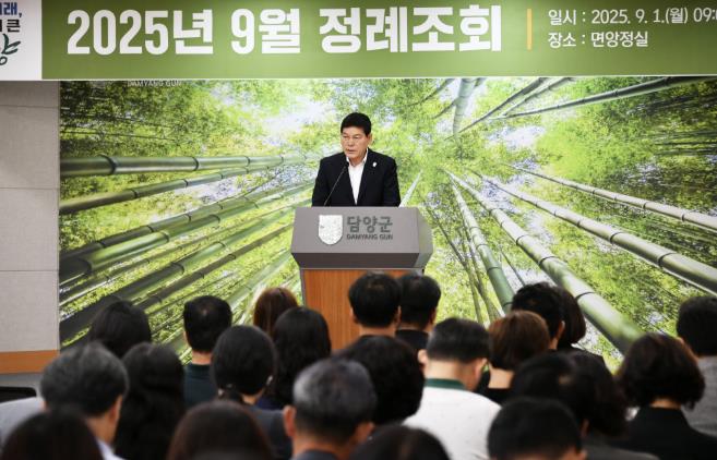 이날 조회에서 정철원 담양군수는 “8월 한 달간 민생회복 소비쿠폰 지급과 집중호우 피해 복구 등 현안에 책임감 있게 임해준 공직자 여러분께 깊이 감사드린다”고 격려했다.