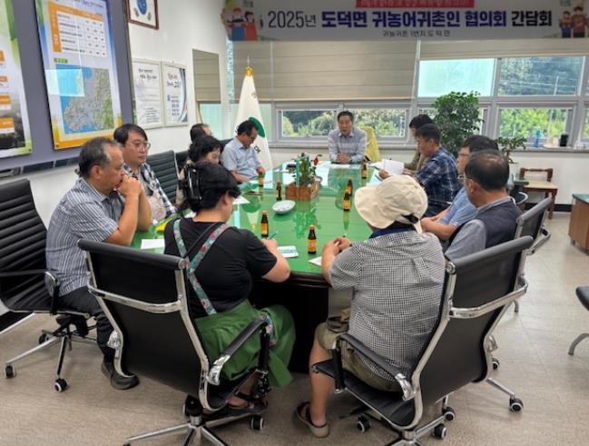 도덕면은 그동안 매월 간담회를 개최해 오고 있으며, 6개 리 대표자와 분기별로 마을 이장이 참석해 귀농어 귀촌인의 애로사항을 청취하고 성공 사례를 공유하는 자리를 마련함으로써 귀농어 귀촌인과 마을주민 간의 가교역할을 충실히 수행하고 있다.