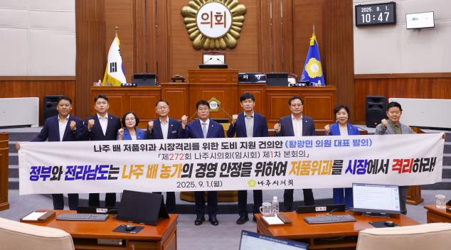 나주시의회는 건의안을 통해 ▲정부와 전라남도는 나주 배 농가의 경영 안정을 위하여 저품위과를 시장에서 격리하고 가공용 매입을 통한 수급 안정 대책을 마련할 것과 ▲나주 배 브랜드 가치 보호와 과일 유통시장 안정화를 위하여 저품위과 매입에 필요한 총 지원금의 50%를 도비로 조속히 지원할 것을 촉구했다.