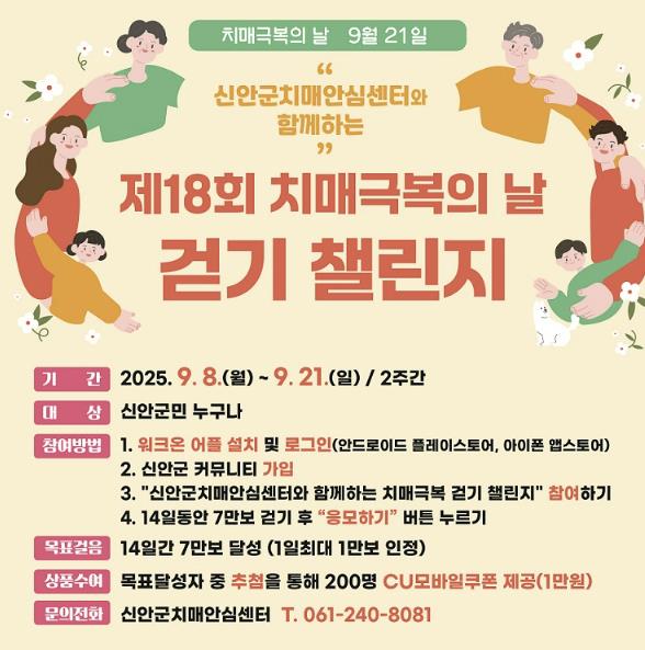 김현희 신안군 보건소장은 “걷기는 치매 예방에 가장 효과적인 생활 습관 중 하나”라며, “앞으로도 다양한 프로그램을 통해 치매에 대한 인식을 개선하고 치매 친화적인 지역사회를 조성하기 위해 지속적으로 노력할 것”이라고 밝혔다.