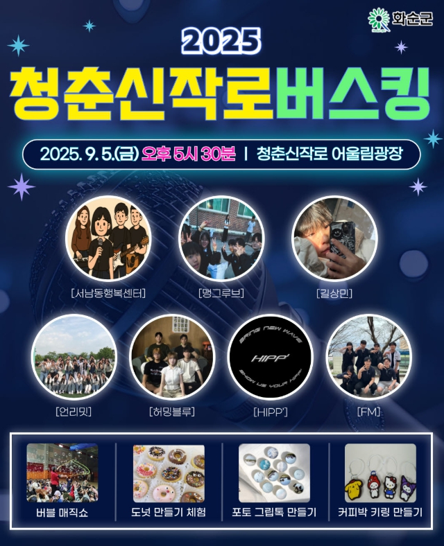 이번 주 무대에는 화순 관내 고등학생과 대학생 등 청년 아티스트들이 참여해 다채로운 공연을 선보인다.