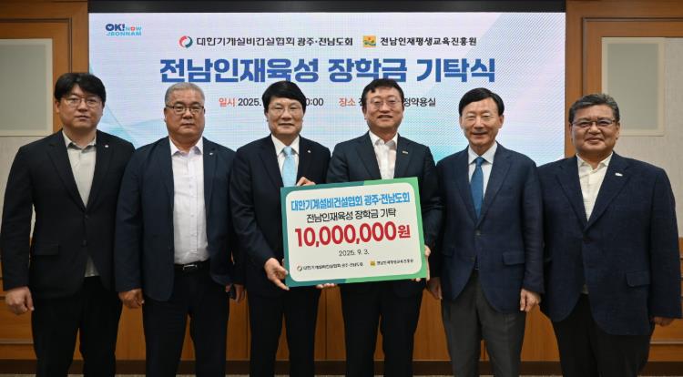 이날 전남도청에서 열린 기탁식에는 명창환 전남도 행정부지사, 전상철 대한기계설비건설협회 광주·전남도회장, 범희승 (재)전남인재평생교육진흥원장, 문인기 전남도 건설교통국장 등이 참석했다.