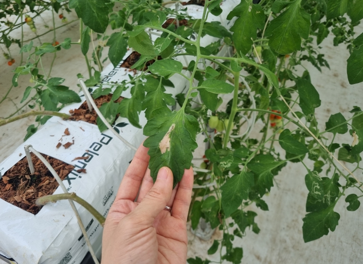 토마토뿔나방은 토마토, 파프리카, 고추 등 가지과 채소류에 피해를 주는 대표적인 검역 해충이다. 알에서 부화한 유충이 작물 조직을 파괴해 생육을 저해하고, 특히 열매에 침입할 시 상품성이 크게 떨어져 농가 소득에 직접적인 피해를 준다.