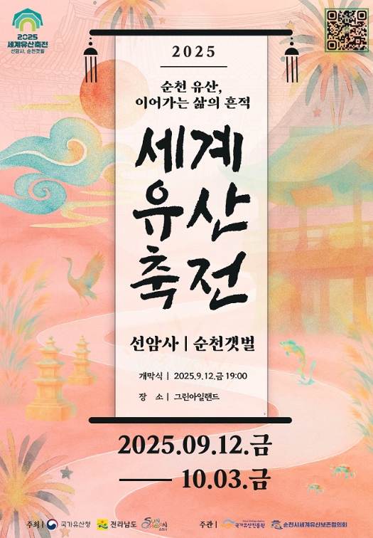 오는 9월 12일부터 10월 3일까지 선암사와 순천갯벌에서 열리는 이번 축전은 유네스코 세계유산의 가치와 매력을 다양한 방식으로 풀어낸다.