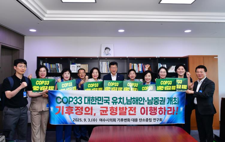 이어 여수시의회 의원들은 국회포럼 '대한민국 탄소중립과 남해안·남중권의 역할'에 참석한 뒤, 민형배 의원을 만나 건의안을 다시 전달하며 COP33 남해안·남중권 유치의 필요성을 재차 강조했다.