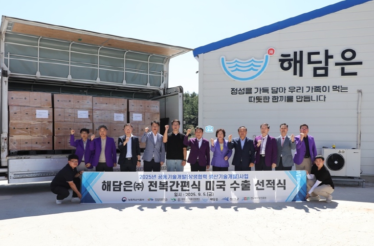 지역 청년업체가 혁신적인 연구개발을 통해 해외 판로를 개척한 모범적인 사례로 평가받고 있는 ㈜해담은의 이날 선적식에는 신안군을 비롯해 한국식품산업클러스터진흥원, 목포수산식품지원센터, 해양바이오연구센터 등 주요 관계자들이 참석해 미국 시장 진출을 축하하고, 향후 해외 시장 개척에 대한 의지를 다졌다.