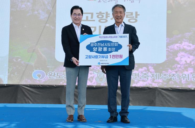 지난 6일 열린 ‘약산 진달래·흑염소 축제’에서는 양광용 광주전남시도민회장이 야구단을 위해 1천만 원을 기부했다.