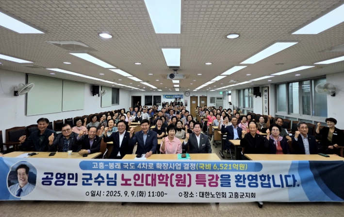 또한, 고흥~봉래 국도 15호선 4차로 확장 예타 통과, 365 국민 소통폰 개통 등 지역 현안사업과 군정 방향을 소개하며 “어르신들의 열정과 참여가 모여 군민이 한마음 한뜻으로 합치됐을 때 고흥군의 행복한 미래를 만들어 갈 수 있다”고 강조했다.
