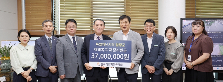 함평군은 10일 “한국지방재정공제회가 지난 9일 함평군에 특별재난지역 재해복구 재정지원금 3,700만 원을 전달했다”고 밝혔다.