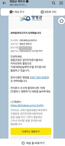 군에 따르면, 지난 8월 5일 1차 '카카오 알림톡' 전송 이후 9월 5일까지 체납액 11,379건, 6억 2,699만 원을 징수했으며, 이는 전년도 동기간 징수 실적(7,339건, 4억 908만 원) 대비 4,040건, 2억 1,790만 원(53.3%) 증가한 수치다.