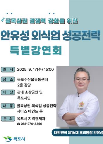 이번 강연은 소상공인들에게 실질적인 경영 노하우를 제공하고 서비스 역량을 높이는 데 목적이 있으며, 안유성 명장이 직접 현장 경험을 바탕으로 성공 전략과 고객 만족을 이끌어내는 서비스 마인드를 전할 예정이다.