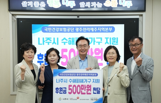 이번 성금은 국민건강보험공단 광주전라제주지역본부 직원들이 마련한 것으로 갑작스러운 폭우로 피해를 본 나주시민들의 조속한 생활 안정과 피해 복구 지원에 사용될 예정이다.