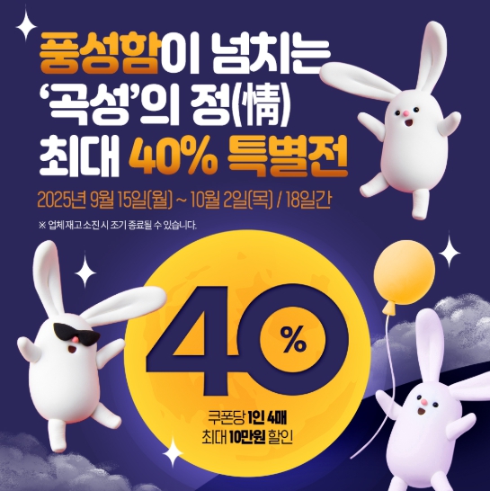 곡성몰 관계자는 “올해 추석에도 곡성몰을 통해 정성 가득한 명절 선물을 준비하시길 바란다”라며 “앞으로도 소비자는 합리적인 가격과 편리한 쇼핑을 농가는 안정적인 판로와 소득 증대를 동시에 얻을 수 있는 상생 구조를 강화해 나가겠다”라고 말했다.
