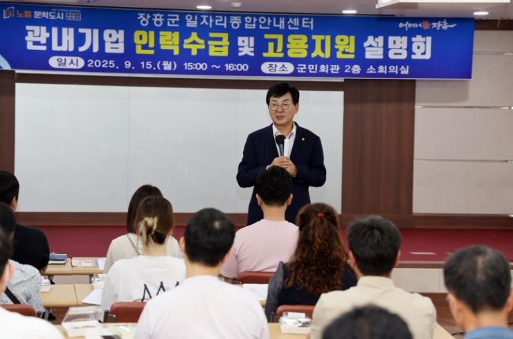김성 장흥군수는 “이번 설명회와 노동인권 교육을 통해 기업들이 인력수급과 고용정책에 대한 이해를 높이는 동시에, 인권 친화적 고용문화 정착에도 도움이 되길 기대한다”며, “앞으로도 기업의 목소리에 귀 기울이며, 일자리종합안내센터를 중심으로 기업과 구직자가 상생할 수 있는 든든한 지원자가 되겠다”고 말했다.