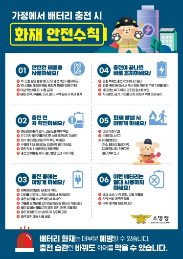 특히 올해에도 6월 기준 전동킥보드 30건, 전기자전거 20건, 전기오토바이 10건의 화재가 발생해 배터리 화재 위험은 여전히 지속되고 있는 상황이다. 또한 최근 부산·서울·광주 등 전국에서 아파트 화재로 인명피해와 재산피해가 발생하는 등 가정 내 배터리 충전 중 화재 사례도 잇따르고 있다.