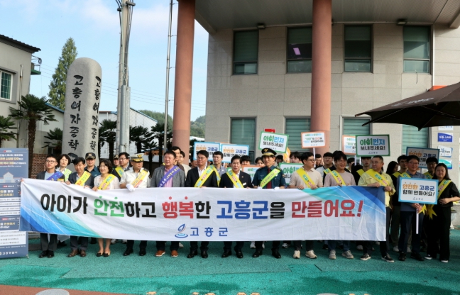 이번 캠페인은 어린이 등교 시간대에 맞춰 고흥군과 고흥경찰서, 고흥군교육지원청, 고흥여자중학교, 고흥동초등학교, 모범운전자 협회 등 150여 명이 참여한 가운데 민관합동으로 진행됐다.