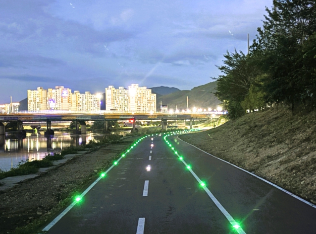설치 구간은 △제1황룡교~황룡파크골프장 △황룡파크골프장 연습장~황룡대교 두 곳으로 총 2.4km 길이다. 군 관계자는 “태양광 충전식 표지병을 설치해 친환경적이고, 유지·관리 비용도 적게 든다”고 설명했다.
