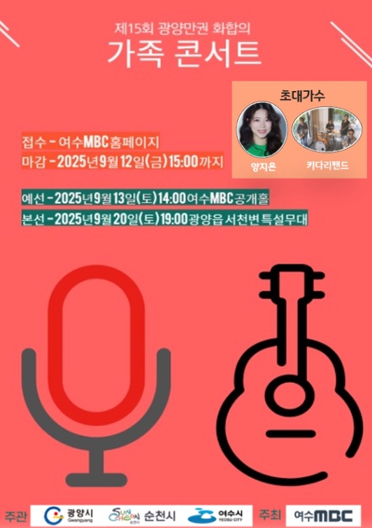 광양만권 화합의 가족콘서트’는 광양만권 3개 시 시민의 상호 이해와 화합을 도모하고 건강한 지역 공동체 문화를 조성하기 위한 아마추어 음악 경연대회로, 광양시·순천시·여수시가 공동 후원하며 여수MBC가 주최한다.