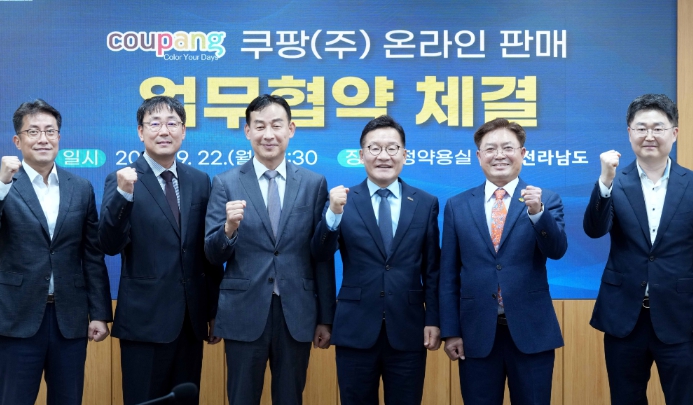 협약식에는 강위원 전남도 경제부지사, 민병기 쿠팡㈜ 부사장, 한승주 전남도상인연합회장을 비롯해 일자리투자유치국장, 쿠팡 및 상인연합회 관계자 등이 참석했다.