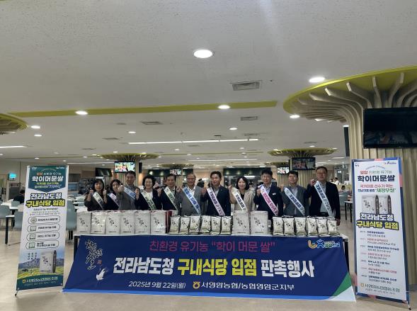 행사는 서영암농협에서 생산한 친환경 유기농 ‘학이 머문 쌀’이 도청 구내식당에 처음 공급된 것을 기념하기 위해 마련된 것으로, 앞으로 서영암농협은 매월 100포대(10kg)를 안정적으로 공급해 구내식당에서 꾸준히 활용될 예정이다.